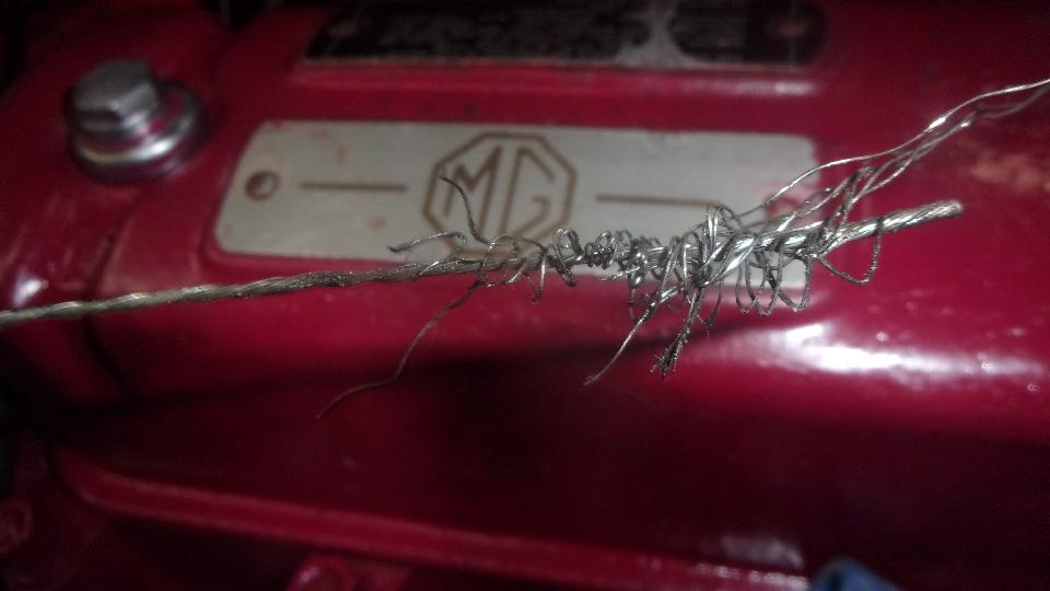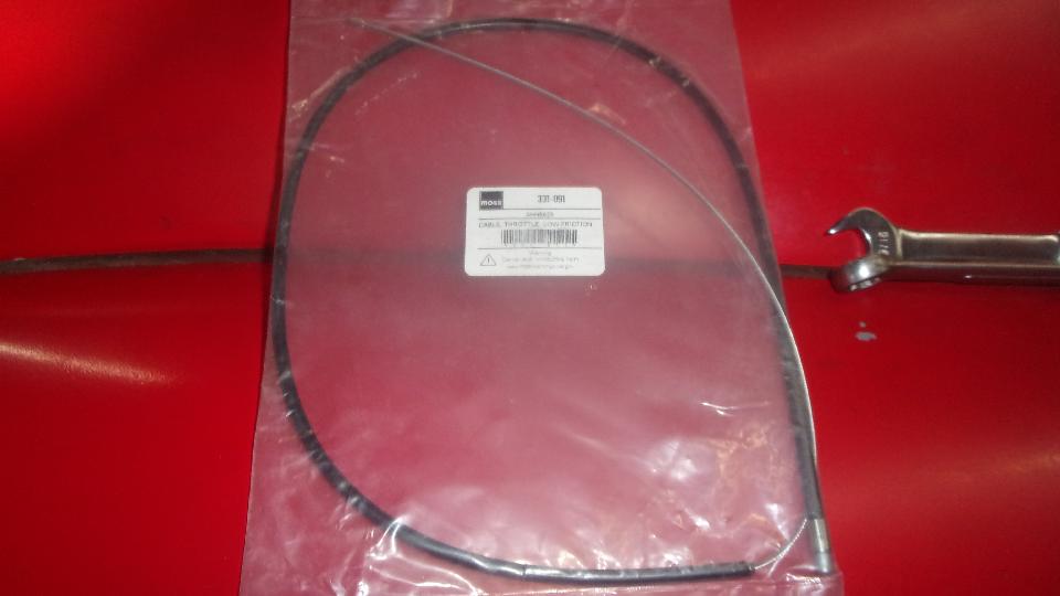 Nearing the end, had a problem with a frayed throttle cable, not uncommon, but another delay. The new Moss Motors throttle cable assembly (premium low-friction model) had a design change and a defect. The larger end fitting into the bulkhead socket had a larger one-piece fitting, where the earlier cable had a two-piece metal end inside of a sleeve (okay once we figured it out). But the output end was missing the crimped on metal ferrule so it would not stay in place in the trunnion above the carburetors. I ended using the new flex wire core with the old outer housing sheath. Pretty sure this is the second time doing the same thing, so now third life for the cable outer sheath (which is getting brittle and beginning to crack). Need to report the cable defect to Moss.