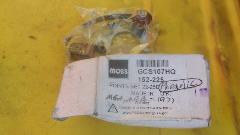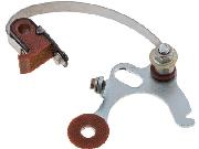 As received it was not configured like the picture in the Moss web site ad (picture at right). It had a nylon top-hat bushing on bottom, then the spring arm on that bushing, and on top a large phenolic washer, small phenolic washer, and the hex nut (convenience of packaging). Notice the rubbing block with moving contact is loose, hanging on the spring arm, because there is no pivot shaft on the base plate (where the large phenolic washer is shown in the ad picture). Of course there are no instructions or picture to show you how to assemble it. When installing it, the moving contact must be mounted on the fixed shaft in the distributor.