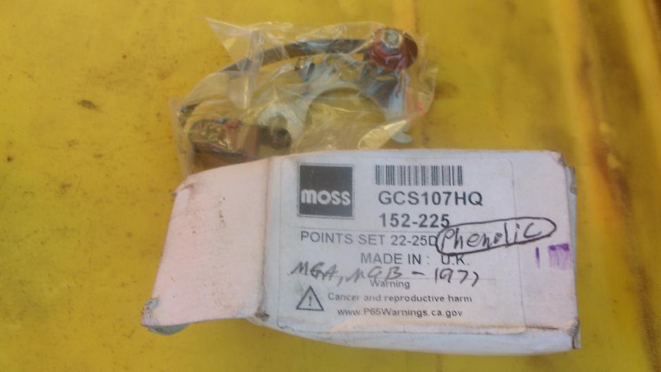 Before it got dark I wanted to reinstall the old distributor with good vacuum unit, but had to install a new set of points first, which is the only thing we didn't change when it was giving us problems a few weeks ago. I pulled out what I thought might be the best point set I had, Moss 152-225 Point Set, premium aftermarket (with phenolic rubbing block). Checked records, purchased in January 2022. WOW! That's a $20 set of contact points! Really? Now priced at $21, but back ordered.
