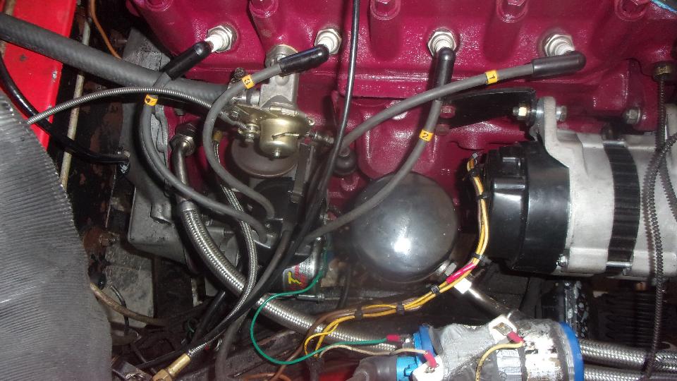 We took the opportunity to change two heater hoses that were looking soft and puffy, a bit of preemptive maintenance. Also installing the heater valve, distributor, alternator, carburetors, thermostat and radiator (fairly quick for the common stuff).
