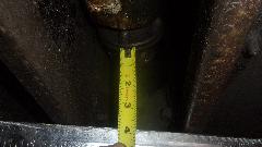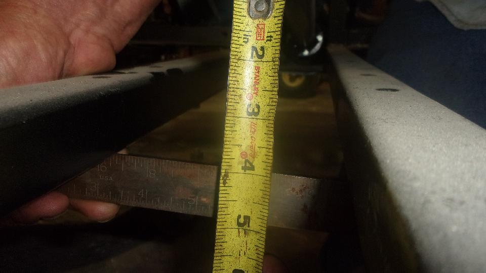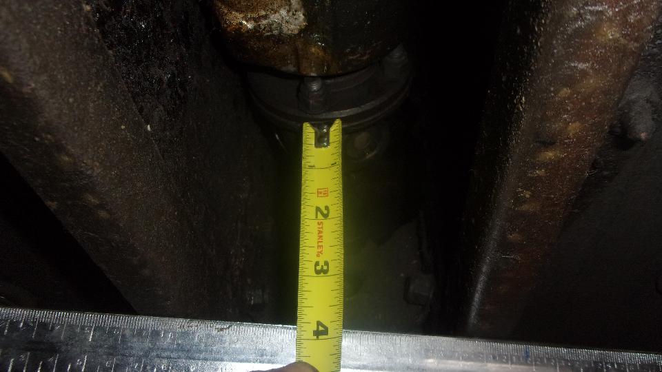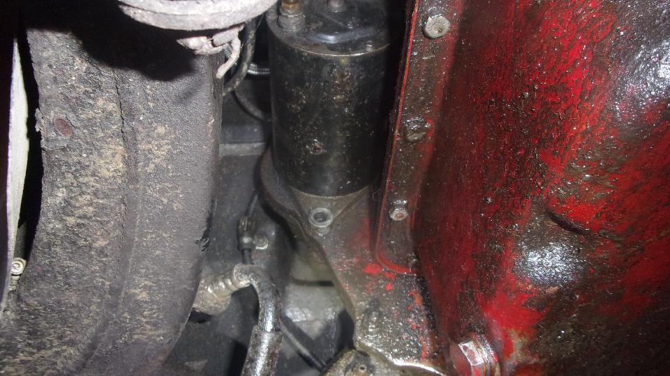 Then we had Stu's daily driver MGA (standard 1600 4-speed) up on his new hoist, trying to put a bolt back in the lower ear of the starter motor. Some MGA have fine threads in the bellhousing, while others have coarse threads. Neither fine nor coarse thread bolts would screw in here. I think the starter is just slightly misaligned so the holes don't line up, needing to loosen the top bolt for realignment. Meanwhile it was a golden opportunity to measure from bottom of propshaft flange to bottom of frame on this car, which also turned out to be 3-7/8 inches. Not a coincidence. I recon Stu hit this one right on the head for height of his new 4-synchro gearbox mount in the MGA chassis. Easy enough to remove for service as well (as long as it is not an overdrive gearbox).