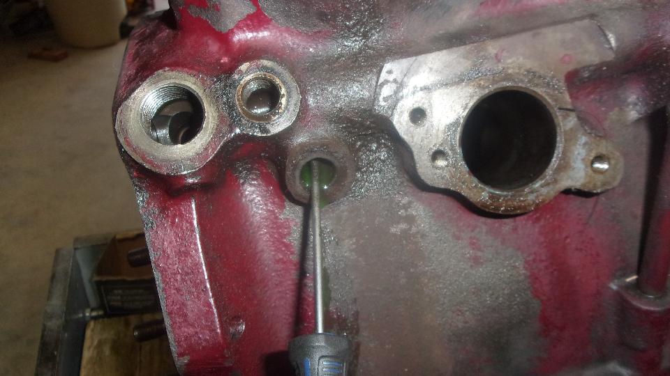 A quick review of the little in-line notch in the camshaft rear bearing journal that is there to meter oil slowly to the cylinder head for rocker shaft lubrication. So far I don't know the intended mechanism for the MG TD/TF engines that should accomplish something similar, but that needs to be resolved for Stu's MG TF (which dumps way too much oil onto the cylinder head). As usual, removing the engine block drain cock (or plug in this case) did not drain coolant out of the block. Lots of digging around with a small screwdriver did finally clear this port to drain it.