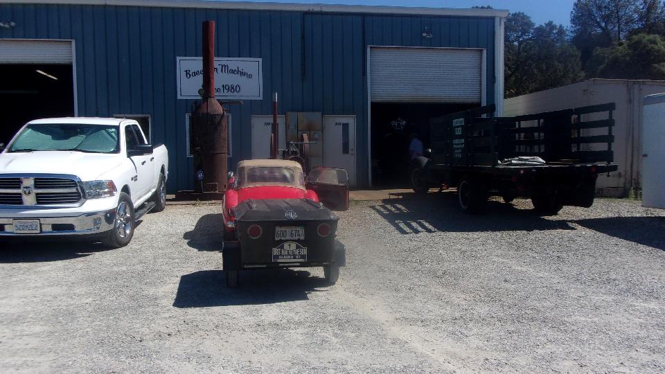 Okay, all stripped down, pack it up and head down the road to Baechler Machine in San Andreas, CA. Say hello to Willie Baechler who has been here more than 40 years. He cut his teeth working on vintage and antique vehicles when they were not so vintage. The Winchester Ranch flat bed truck is (I think) a 1940's something International.