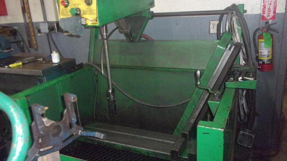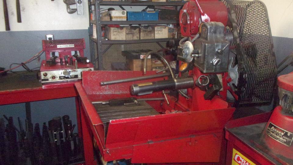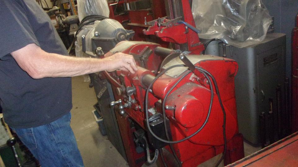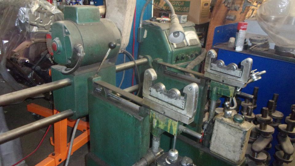Then on to the machine tool toys, beginning with a honing machine for pretty much anything that needs to have a precision round bore, like connecting rods for instance. The next one (if I recall correctly) is a machine for re-lining babbitt bearings when you do not have replaceable bearing shells. Next is the spin balancing machine for crankshafts, and I suppose can balance flywheels and clutches on the same machine.