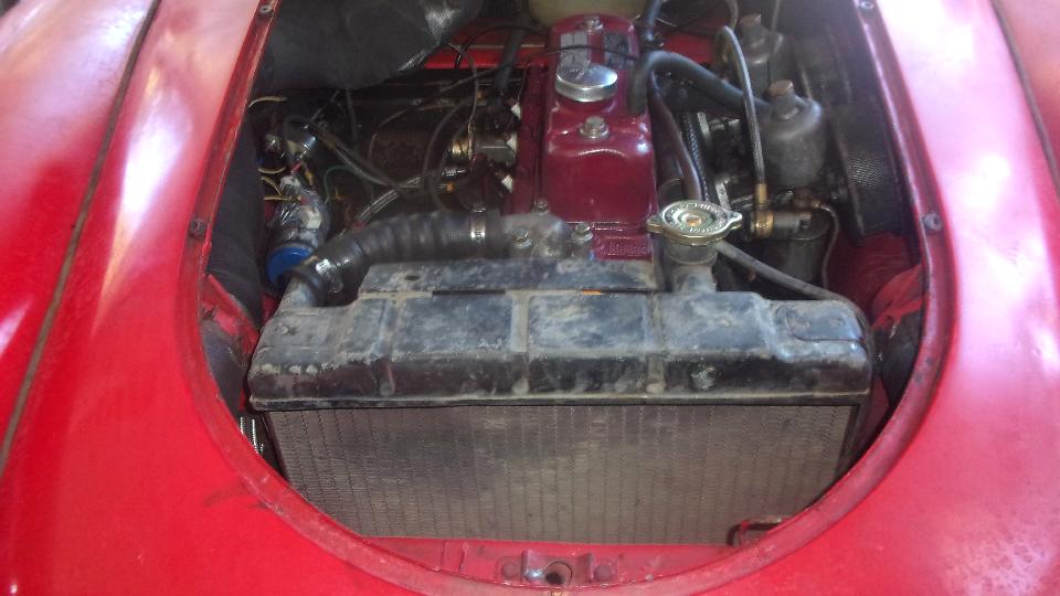 So there it is in the car, pressure tested, leak tight, all warmed up and ready for a test run, and it is not overheating while idling with bonnet down on a hot day. I'm already gloating. Just look at all the air flow space through the original cell core ribbon fins. Let's go!