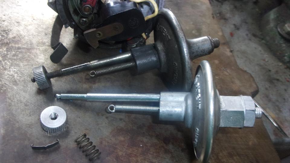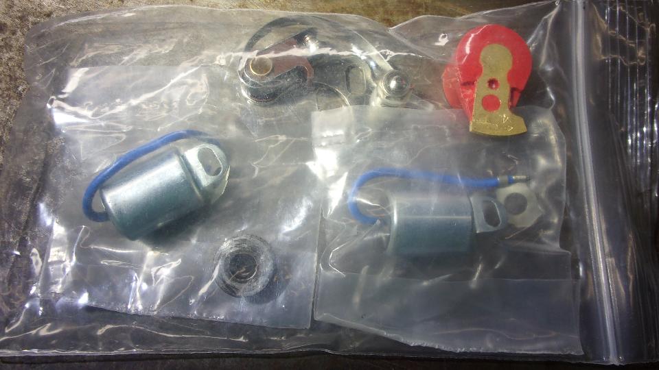 The forth package came from British Vacuum Unit with a new vacuum unit (surprise), one high quality contact points set, a new red rotor, and a couple of (hopefully) good condensers. The little bits are for inventory, while the vacuum unit is about to be installed in my spare distributor.
