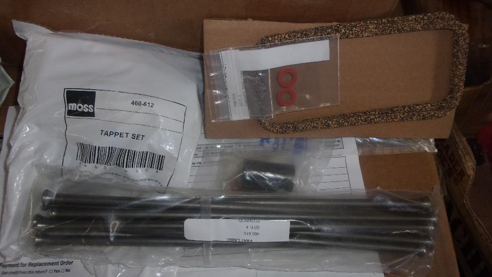The second package was a set of tappets and pushrods that was supposed to go into the borrowed engine I installed in my car a month ago. But in spite of all insistence and a promise that it would ship from California to California, this package also shipped from the east coast, which compelled me to transfer one year old cam and tappets and pushrods from my old engine to the borrowed engine. Now the new tappets and pushrods will go into the remachined engine along with the cam from the borrowed engine.