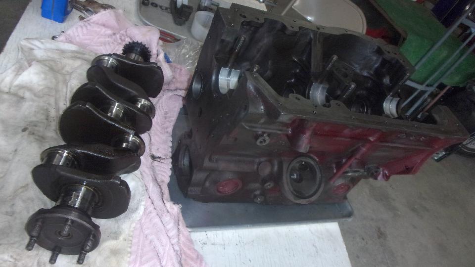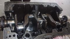 Set the crankshaft in place, install thrust washers and center main bearing cap, then the front and rear main bearings and caps, giving it a little whirl at each step to assure it still spins freely with finger tips. Then torque it down, and spin it again.