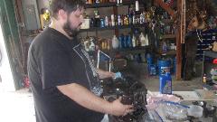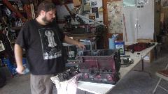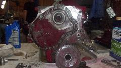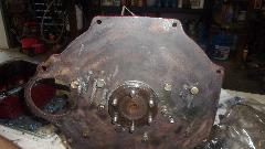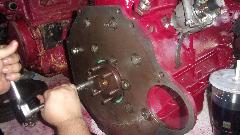 Cleaning parts and scraping gaskets takes too much time. We found a spare engine rear plate with