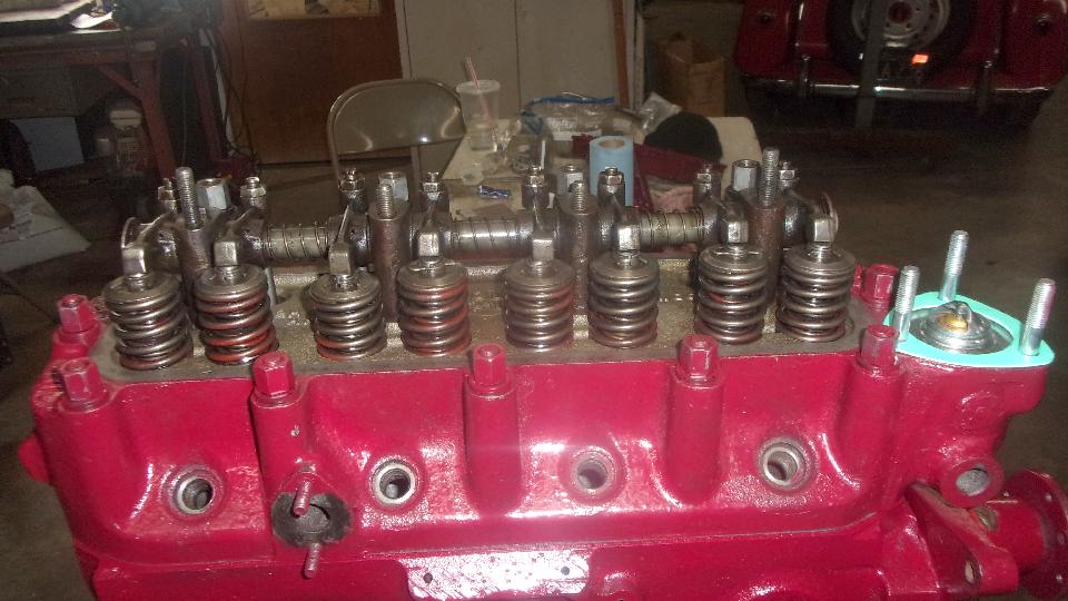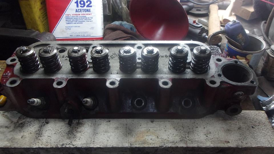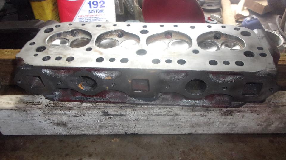 I like to check to be sure the valves don't leak. Turn the head upside down and set it level on a couple of 2x4 boards on edge. Install spark plugs to close those ports. Pour water into the combustion chambers nearly full, and wait about 5 minutes to see if any water might drip through into the intake and exhaust ports on the side. You have a right to smile when it does not leak.