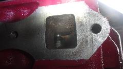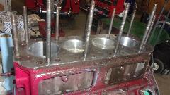 with new sleeves at standard size and the head with new hardened steel exhaust seats and a fresh valve job. He gave me back the new pistons and the serviceable intake valves and the worn exhaust valves, and also the old exhaust valve seats that he removed from the head. Those turned out to be cast iron inserts (that broke when being removed). So now I'm really PO'd at the prior shop that installed them and charged me for hardened steel valve seats just 6-years and 170,000 miles back, which is the only reason this head is being reworked again now.