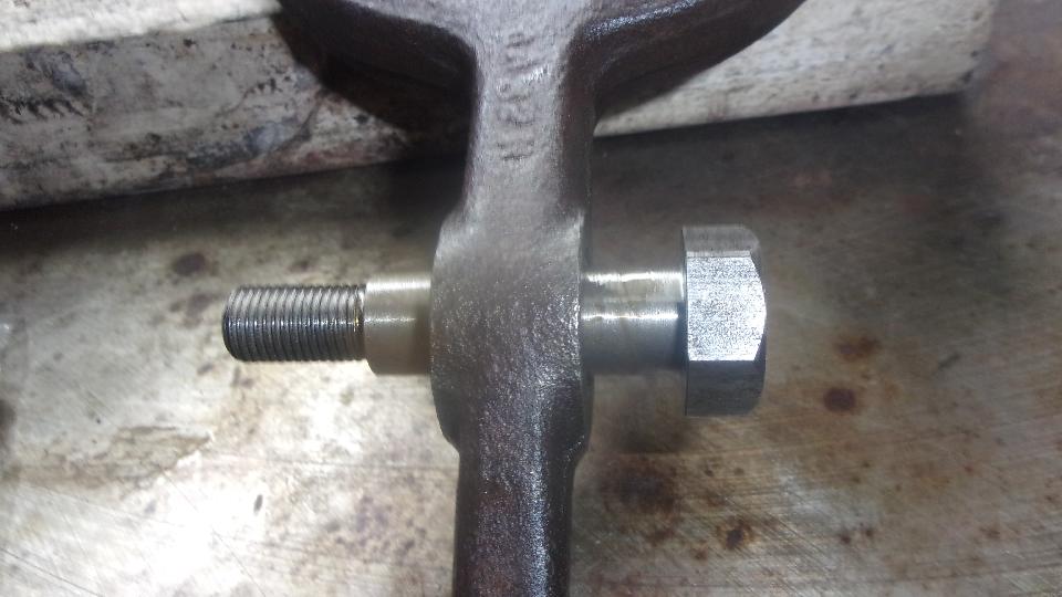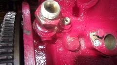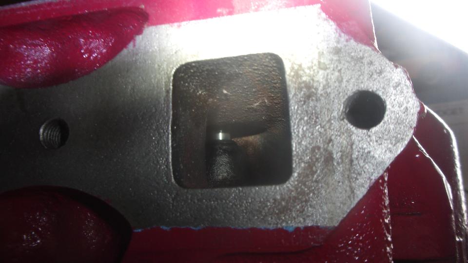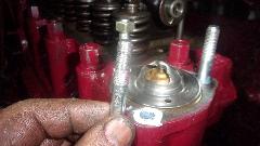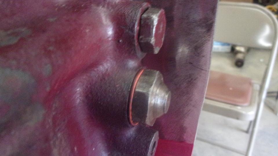 go away. The manifold studs in side of the head have UNF fine threads on both ends (also not hardware store issue). But the very similar studs on top for the thermostat have odd threads, most likely 5/16-BSF in the head and 5/16-24-UNF threads on top end. You can't buy these studs at Ace Hardware, and after building up two engines I don't have any more spares just now. The expedient solution is to use a touch of gasket sealer, limit torque to 10 lb-ft, and double nut the one stripped thread with second nut higher up on better threads.