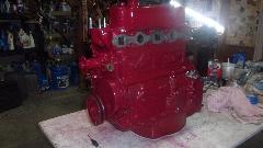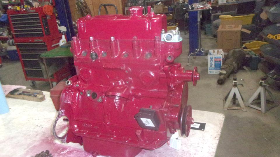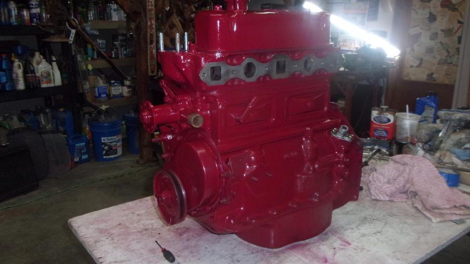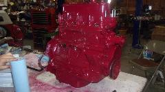 All of this while the engine was upside down without the head (fun doing the cam timing upside down). Finally installed the oil pump and screen and the sump, and painted the sump and a bit more that is easy access when inverted. That's where the engine would sit for paint to dry overnight.