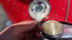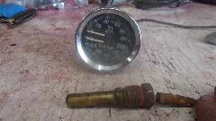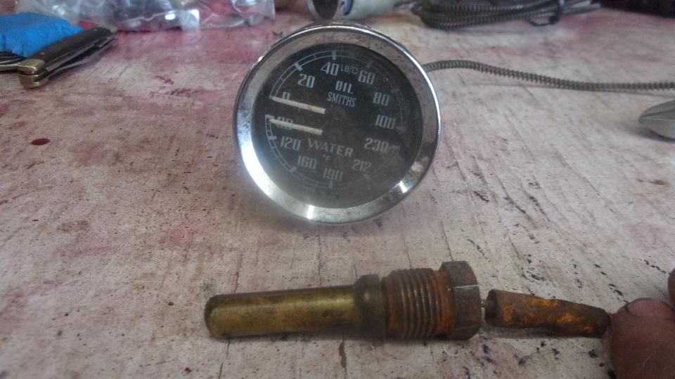 Okay, radiator back in, hoses all tight, fill up the coolant and check everything again. Another leak? This time it's the temperature sensor port in the cylinder head. Since the temperature gauge had failed with a cracked fluid pipe, and the brass nut was buggered anyway, I had just cut the sensor end off and used it to plug the port in the head. Tired of dealing with the rounded off brass nut, I grabbed another failed gauge that needed to be repaired and cut that one to retrieve the sensor bulb and good brass nut to plug the port in the head. Come on, get creative in a pinch. Top up again, no leak.