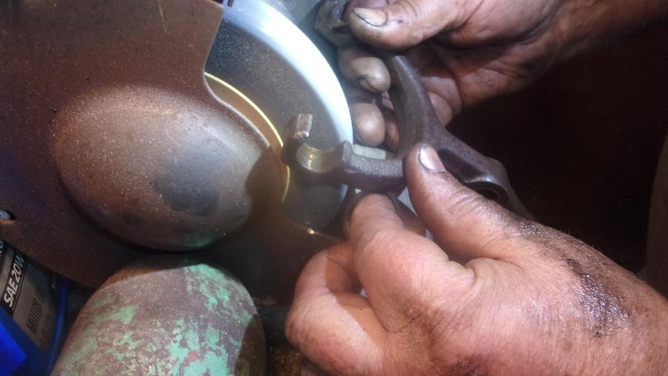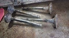Not long to pull the head off and get it on the bench. Then go after the slightly crusty but only mildly worn exhaust valves. Chuck one in an electric drill to spin it, and go at it with 80 grit emery paper on the top and neck, and 320 grit on the angled seat (don't touch the stem where it runs in the valve guide). About 5 minutes each had them cleaned up and ready to lap into the seats in the head (which was another 5 minutes each).