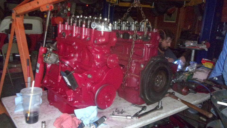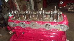 Here are a couple pictures of the rebuilt head we finished late last night. Then it was time to finish last bits of the short block assembly, begin by flipping it right side up.
