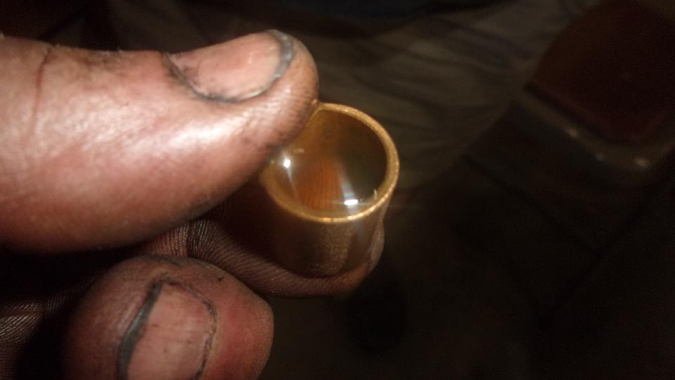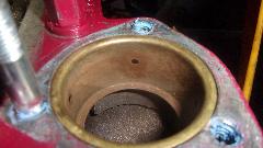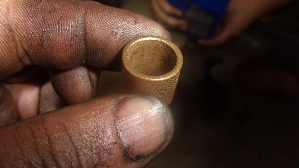 Check and oil the new bushing before installation. Standard thought is to soak the Oilite bushing in oil for 24 hours, but in fact it should pre-oiled. Just to be sure, oil it anyway. Hold upright on one finger, and fill it with oil. Put thumb over top to seal the central cavity, and squeeze to put some hydraulic pressure on the oil. In a few seconds you should see oil begin to "sweat" out of the bushing OD.meaning the porous sintered bronze bearing material is saturated with oil, good to go.