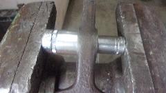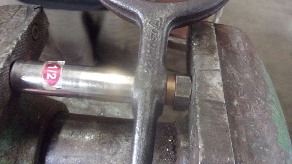 Okay, hold the fork firmly, align it squarely with side of the grinding wheel, grind until hot, dip in water to cool, measure carefully. Repeat several times until desired measurement is reached. Starting with 3.108, stopping at 3.123.