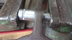 The shoulder bolt makes a good driver for the bushing, with a deep well socket on the other side, just squeeze it in the vice, and it goes together as easily as it came apart. Perfect fit.