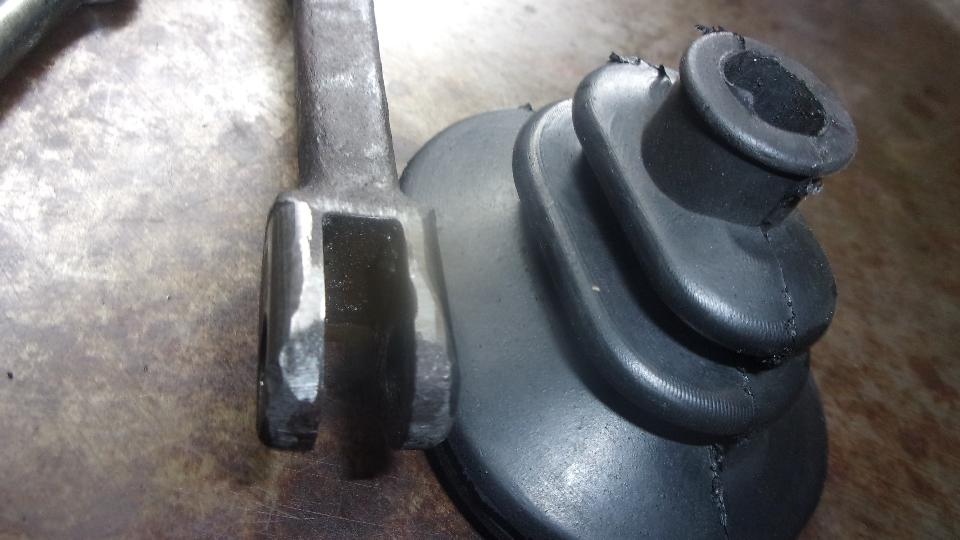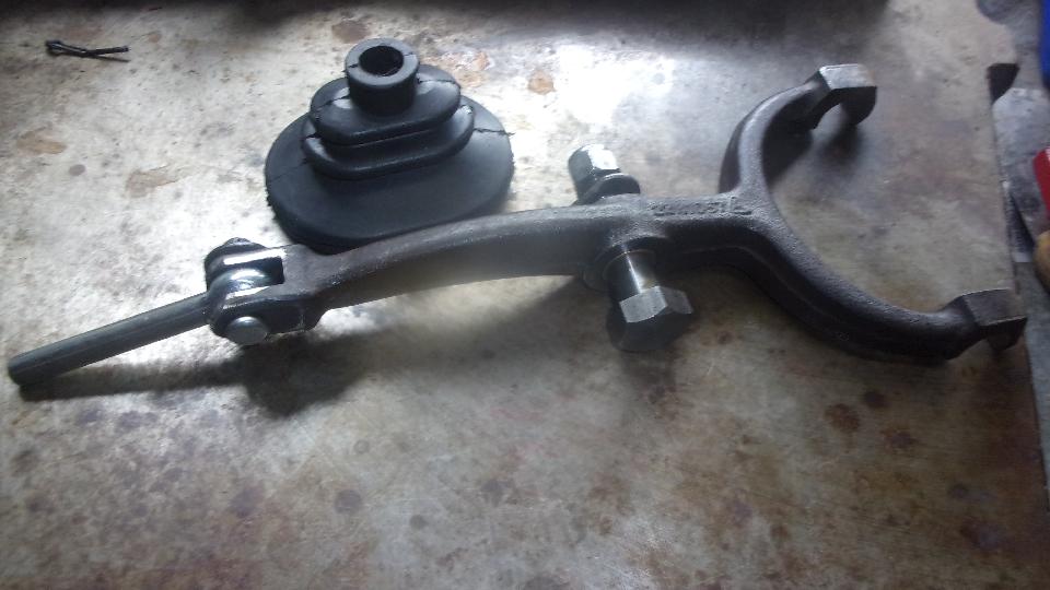 The clutch slave pushrod and clevis pin will be badly worn, so always replace those parts. Good time to replace the rubber excluder boot as well. I like to grind the release arm square end to round off the corners, making it easier to push the boot over the arm when you're under the car. All assembled once just to be sure the required part are all there and won't be lost before assembly.