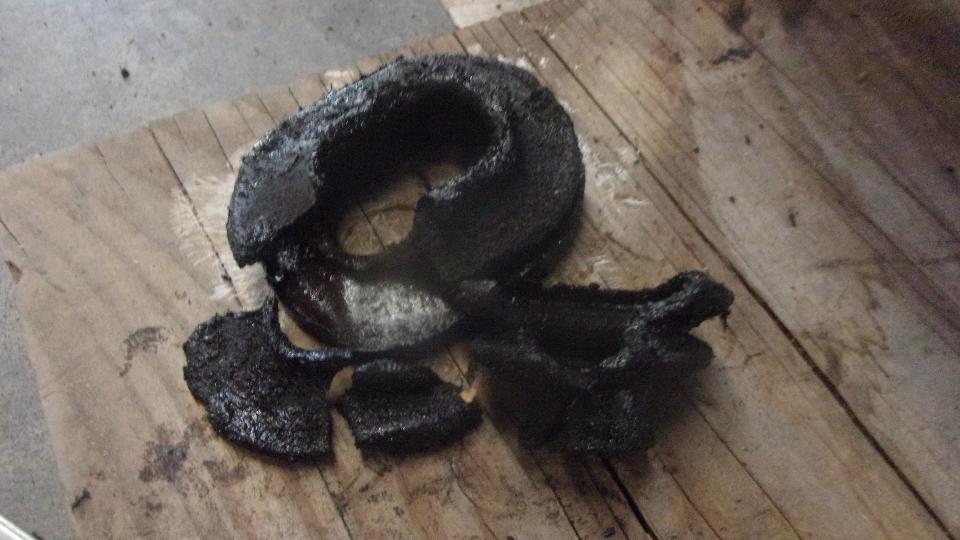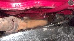 under the car. Obviously another faulty replacement part made with the wrong (cheap) elastomer material.
