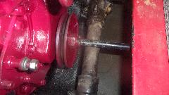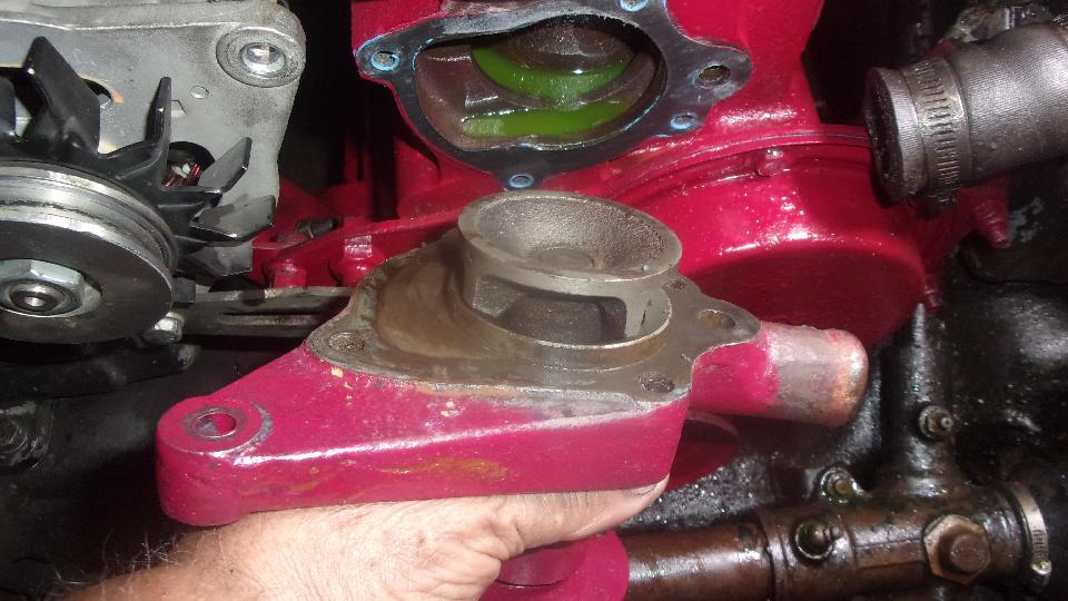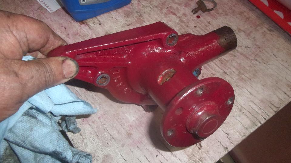 Yank out the duff water pump, and pull the good one off of the loner engine. We know that one is good, because it's the same one that was running on this engine in the car when we came limping in nearly to months ago and transferred it to the loaner engine. So now it's back home again.