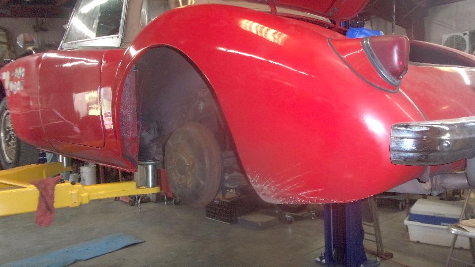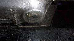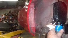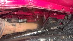 While oil was draining, we finally got around to re-installing the LF wing splash panel that was removed for the dogleg dent repair that was done Aug 8-9. Then had to R&R the rag top frame bracket (again) to reinstall the LR interior kick panel.
