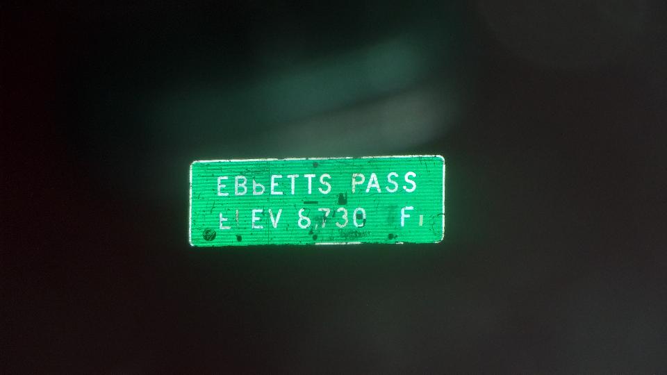 We crested the summit at 11-pm, 8738 feet altitude on the sign (although the GPS called it a little higher). Then on the steep downgrades through more tight twisties similarly 2nd gear for a while for engine braking to avoid over-using the brakes. It gradually eased off into 3rd gear downgrades, and didn't level off much more until nearly at our destination. A bit more than 80 miles through Ebbetts pas in the dark, jolly good fun (if it doesn't scare the bejesus out of you). Crossed the state line and pulled up for the night in Minden, Nevada just shy of 1-am. Hey, we are officially out of California. May plan on returning next summer for all the stuff we didn't get to do in the past two months.