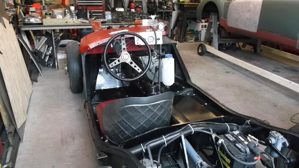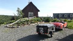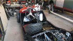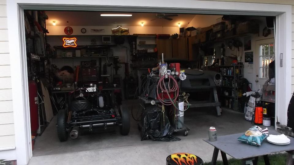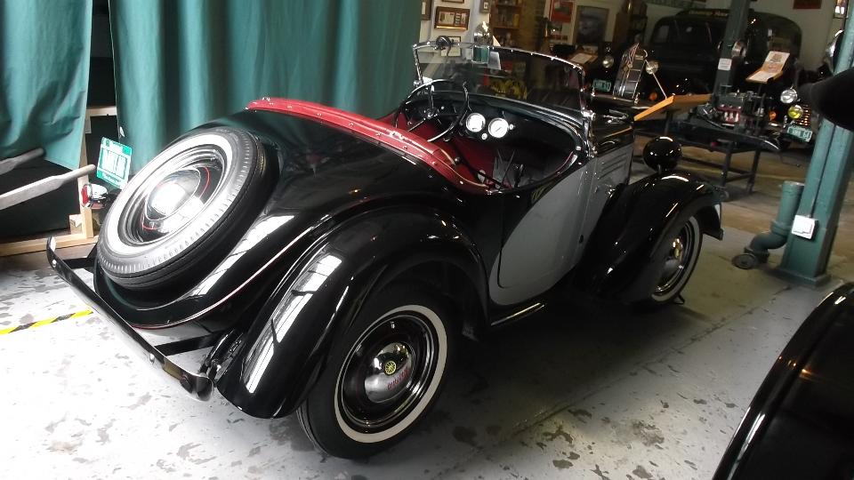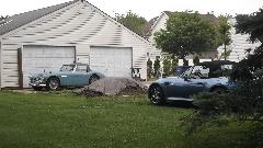 Three photos above are a Bantam Roadster. Two photos below are a replica of the 1886 Benz Motorwagen. Last picture is in the yard next door, an MGA and a bug eye Sprite under tarps.