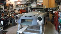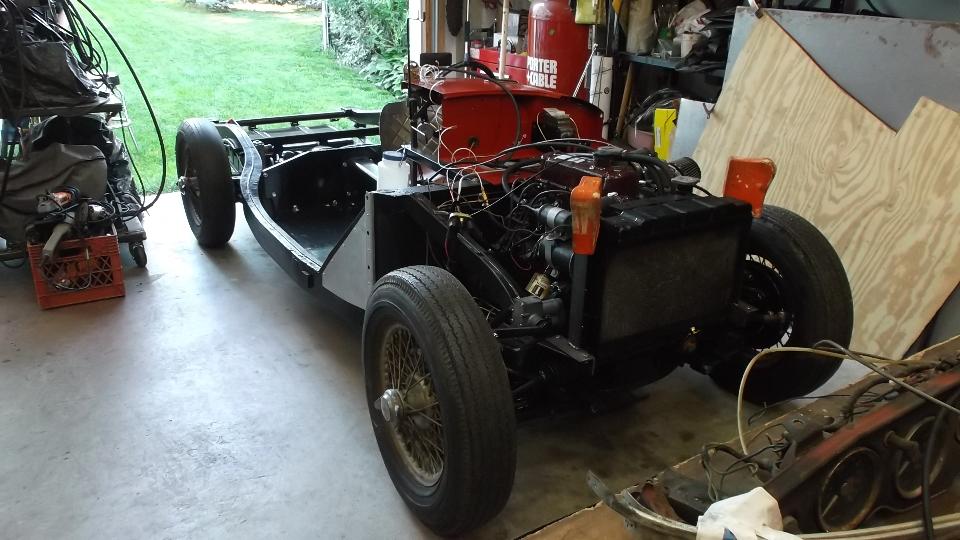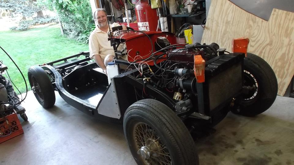 Last night ran late, and we didn't get to WiFi or email, so we get an extra dose of it today. When caught up we have time for one evening appointment with Bob Krzywicki in Arlington, VA. Good to see his MGA very close to the go-cart driving stage. It has been running, not sure if it has been driven yet. This one is well known on the BBS, having the half body cowl to secure the working parts in the cockpit, and a "racing seat" for good impression. Front fenders still have a lot of work to do, and some of the underbody still needs to be cleaned and primed, but it moves along as time and motivation permit.