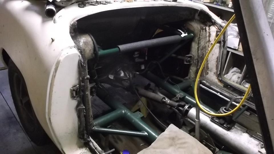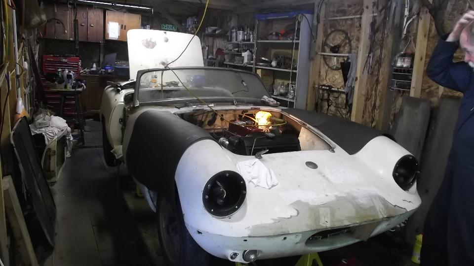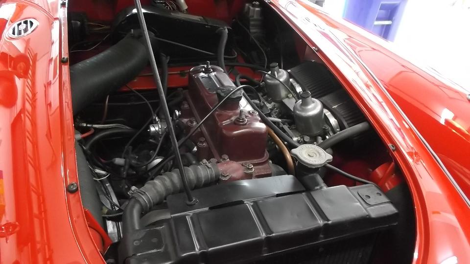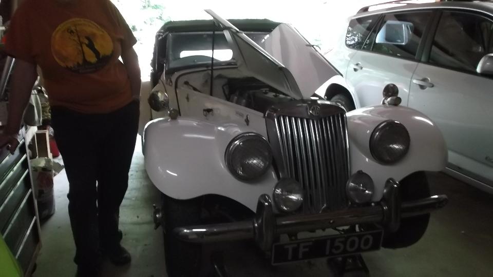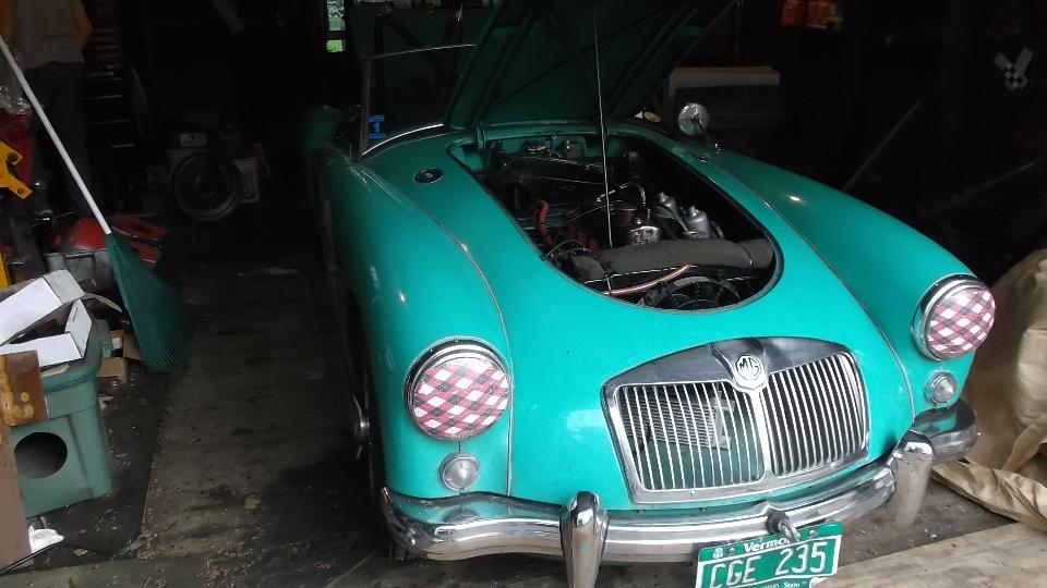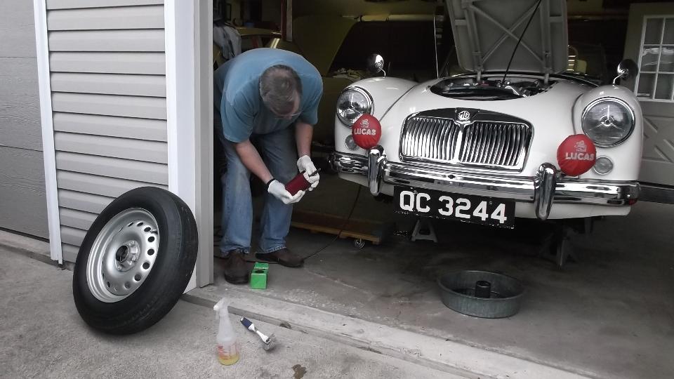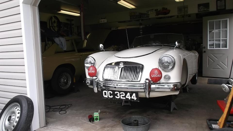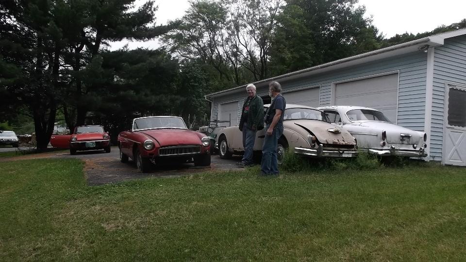 Luxury late sleep in, then catching up with WiFi stuff, followed by lunch and a nice mid day chat with the Ny's. Then high tail it north for an evening visit with Terry Kozo in Allentown, PA. He has a BGT in fresh paint bout ready for reassembly, and an MGA Twin Cam needing a bit of service. We get to fiddle (for a long time) with fitting a new oil filter to the Twin Cam, only to find that it leaks when running. After all the frustration it suddenly becomes a prime candidate for a spin-on oil filter adapter (job for another day).