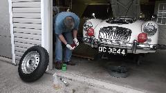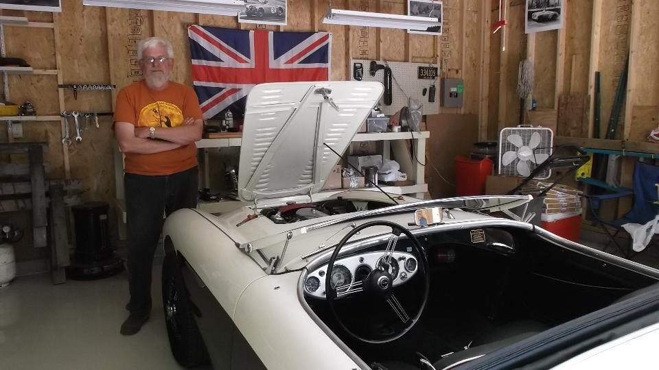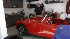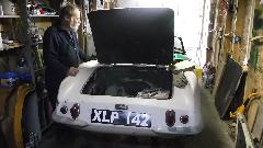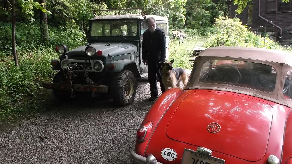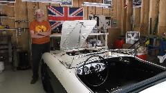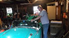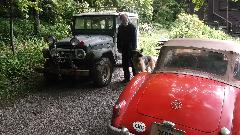 After a not-so-brief chat we roll it down the hill and around a couple of corners to meet Jim Warren who has a 1976 Jensen GT (recently appearing on a magazine cover), and an MGA race car (on wire wheels).