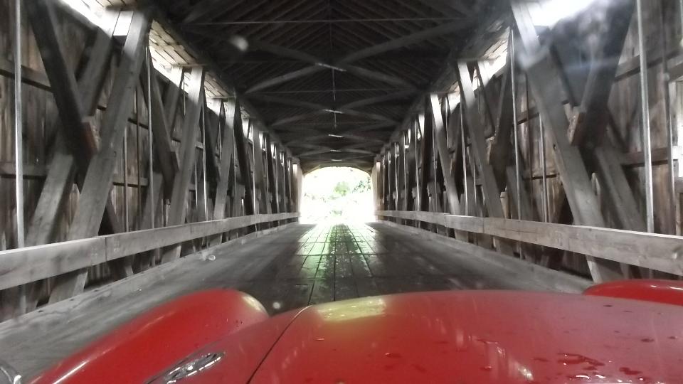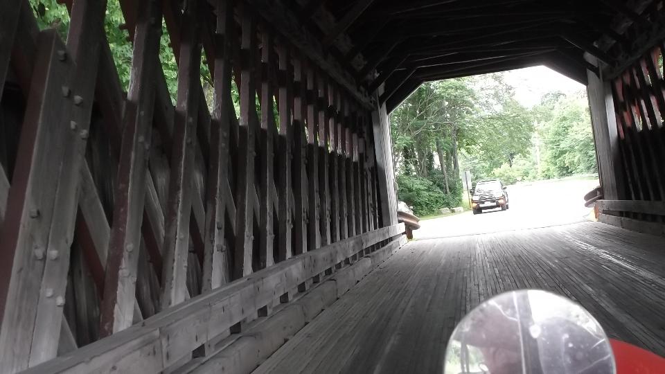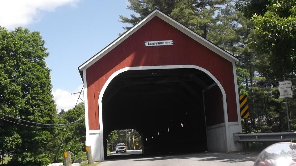 Vermont is quite narrow near the south end, less than 50 miles. So less than one hour travel in the morning put us in Brattleboro, VT, right across the Connecticut River from New Hampshire (with a McD's WiFi connection of course). Thinking there must be something happening in the north-east on a Sunday in June, I pull up my North American clubs list and click on Vermont and New Hampshire (and also Massachusetts for good measure). Turns out we missed a covered bridge tour the day before with British Cars Of New Hampshire including SIX covered bridges in south-west New Hampshire. But I know how to fix that. A couple of phone calls later I have an appointment to pick up a copy of the tour instructions near the starting point in Keene, NH, barely 15 miles away, and off we go.