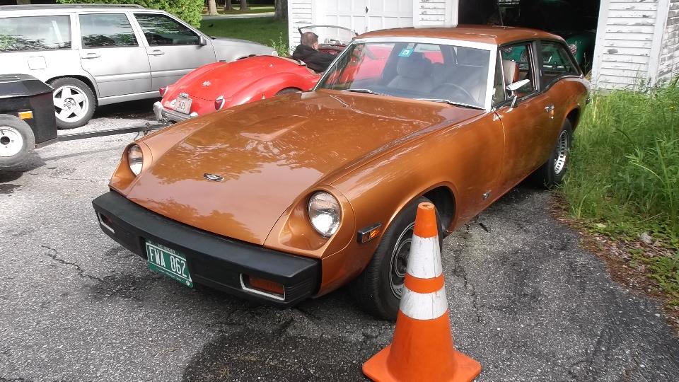 Then we travel several miles south to visit John Werner in Pownal, VT, who has too many toys to count. Lemmesee, a Spitfire, MGB, Jaguar saloon (French configuration), Volvo E-type (or two), a Cobra clone, couple of Range Rovers, and too many motorcycles.