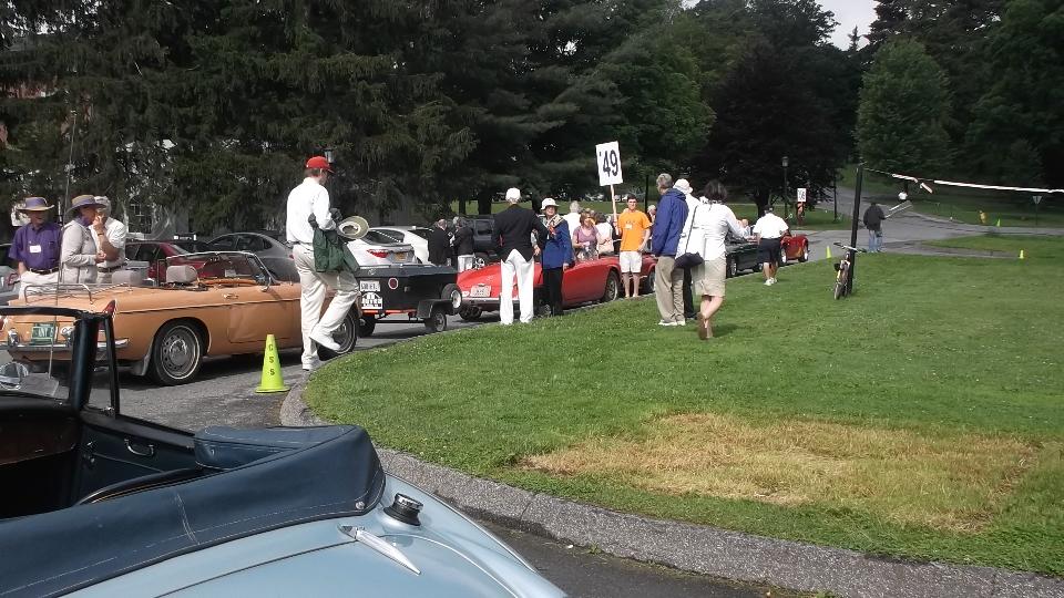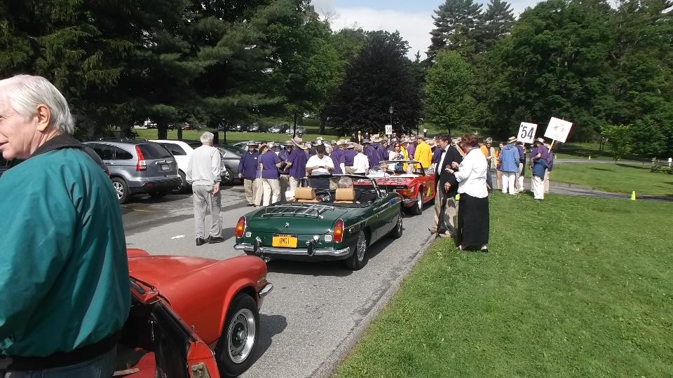Early appointment for the William College alumni Parade in Williamstown, Massachusetts. A number of Little British Cars from the Berkshire British Motor Club (including yours truly) assembled at the college to carry the older alumni in a short parade. Some of these alumni are old enough to make us LBC owners look like kids. There was at least one from the graduating class of '44, which me thinks makes them at least 92. After the parade several club members retreated to "The Chef's Hat" for late breakfast or lunch.