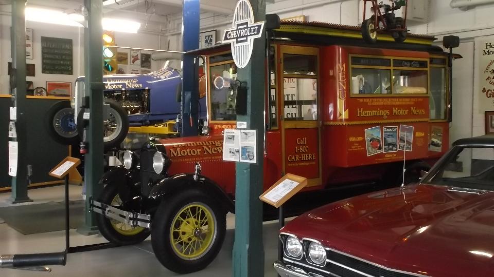 If that's not enough, we then stop to check out the Hemmings Motor News museum, also in Bennington. The first two photos below are the working full service gas station. The next two photos are the Hemmings publishing offices next door. The rest are photos from the museum that is attached to the publishing offices (and used to be a working fabric mill).