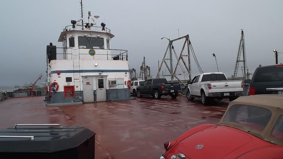Travel day (mostly). It took is an hour and a half to get out of Abbeville LA when we ran into two closed bridges and some detour signs directing us in the wrong direction. But we did finally get to take the scenic route LA-82 along the Gulf coast for about 130 miles (all of what was left of Louisiana). We hopped on a ferry for all of three tenths of a mile, then encountered a few sporadic bursts of heavy rain while being entertained by the waves being whipped up some moderate winds.