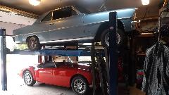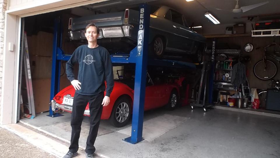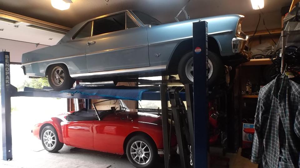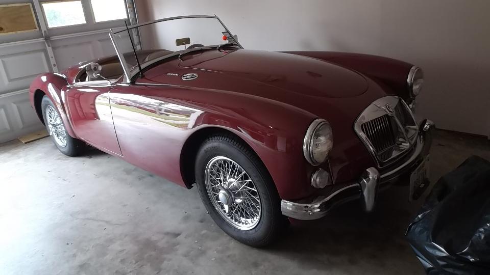 Today's destination was the northwest corner of Austin TX to visit Chris and Heather Spence. Chris has a nice MGA 1600 tucked in underneath a classic Chevy Nova (which was his first car and he still has it). Some astute MGA guru fans may recognize the wheels on this MGA as Maxxim Verse wheels.