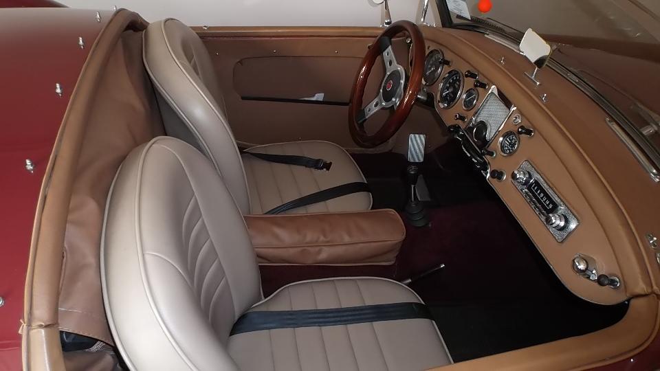 Good day for carousing. One quick trip to the Post Office, and lots of car talk, great way to spend a day with a friend. I did manage to take a few pictures, and this car is a real photo op. As a matter of personal preference, non-standard colors and roadster seats being dressed to look like Coupe seats. Also vintage AM (looking) radio with a USB connector to plug in a thumb drive for music or anything else you may have recorded).