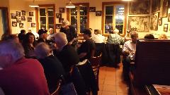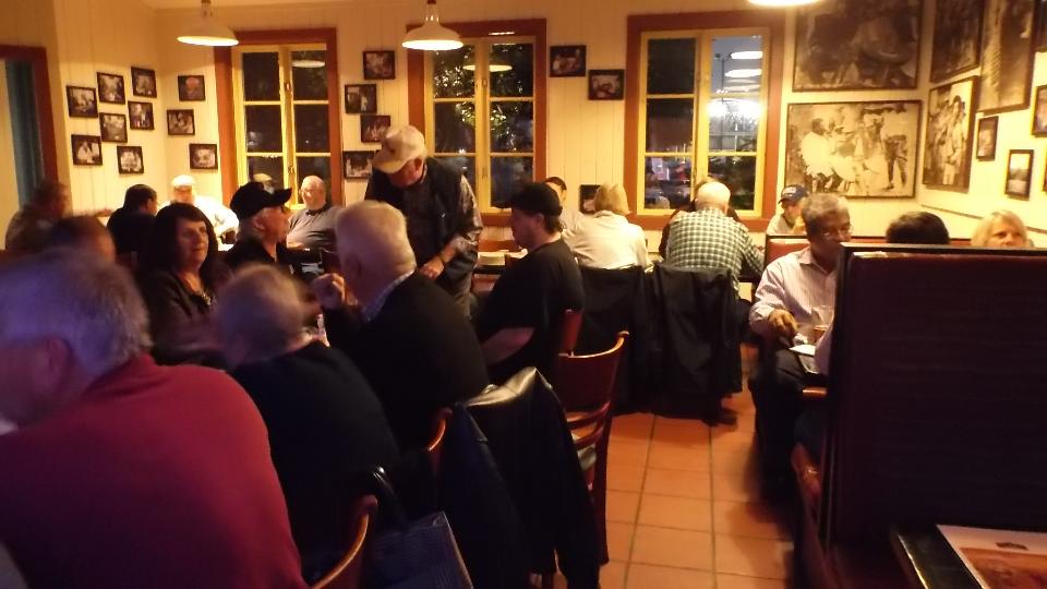 Ten minutes later we were cruising into the Alamo Cafe for dinner and business meeting with Alamo MG Association (about 30 people here). Now there's a friendly bunch of car enthusiasts. After the business part of the meeting I was invited to chat a bit about my life with the MGA and our current venture. Now either I'm really entertaining or there was something interesting about this story, because the jollies and questions went on for a long time until half the people had to leave. Then the meeting and questions resumed in the parking lot for another 20 or 30 minutes while they were checking out the car.