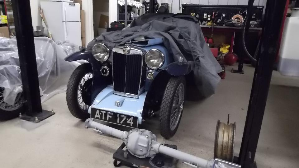 Next up is an MG PA (finished), an MG TF (mid-restoration), and a 1964 pull handle MGB (a very nice car).