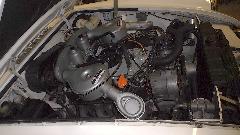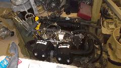 It didn't take too long to remove the engine and failed gearbox. Found a broken exhaust manifold in the process. Failed gearbox at left, replacement unit installed at right. Picture in the middle should be self-explanatory.