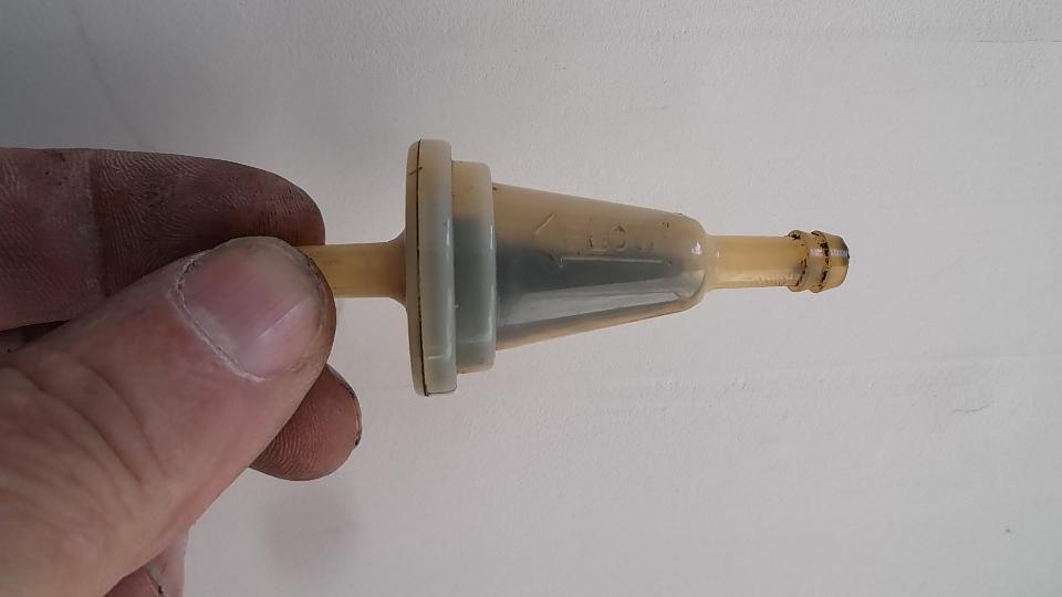 I drug out my camp stove to boil up a pot of water, shut the heat off and drop the brass float into the hot water. In a few seconds it began to produce small bubbles from the solder joint around the girth of the float. This was apparently a very small leak, and it would likely take a long time to boil off all the fuel inside (before soldering up the leak point). I took one attempt at heating the float a bit quicker on the hot plate. This managed to destroy the float (one pop as the solder joint let loose), but no we didn't burn the garage down. Add one fuel float to the next parts order.