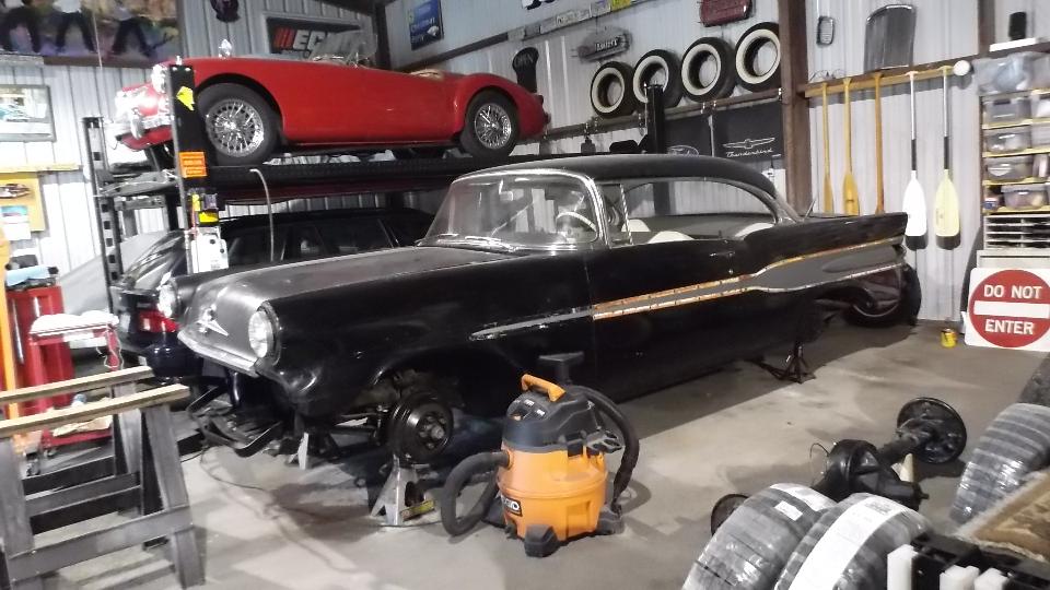There is a Metropolitan inside (and another one outside by the fence). There is a vintage Chevrolet truck, and a Pontiac, and the (little) MGA parked on the lift. A few more cars of not much consequence today are parked under wraps back in the same corner. It is a fun treat, but since the MG doesn't need much we don't spend too much time here. Beat a retreat back to the house for more chat time.