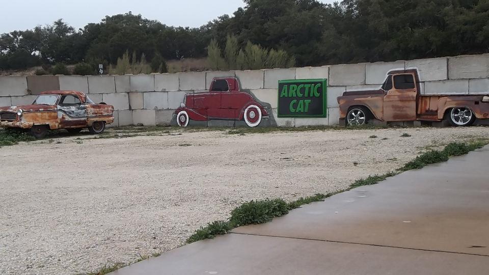 When the rain got to us we stopped in Columbus TX for a breather, then heading northwest. Next stop was in Garfield TX on the outskirts of Austin for a breafast break being the first customers of the day when McD's flipped their lights on at 6-am. There we bumped into a nice bloke who wanted to talk cars, and we blew another four hours off the clock (when we should have been sleeping).