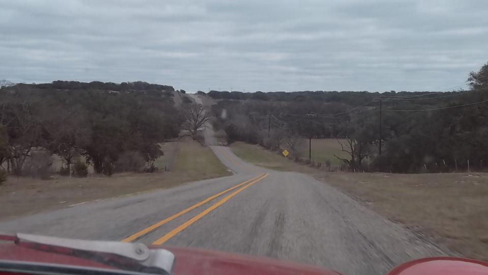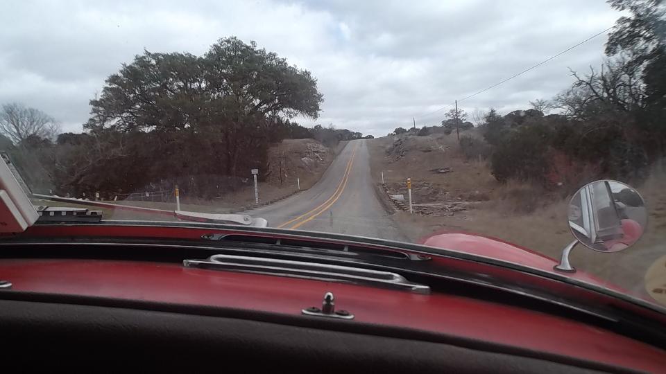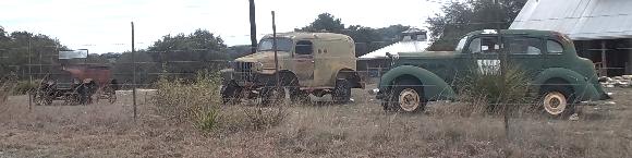 After the retrieval and restart we were heading northwest again through beautiful Texas ranch and hill country, this time without the rain. Yee-Haa! These pictures come from route RM-473 for about 20 miles east from Sisterdale TX. It is a rather narrow and slightly rough 2-lane tarmak road with grass shoulders, nice roller coaster hills and enough turns to keep me alert at the wheel. The 60-mph speed limit seems more than generous (like most of the "brisk" roads in Texas). Don't ask me what the three cars are, but they will greet you if you pass this way.