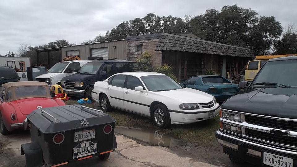 Then after another hour's cruise through oil and cattle country the next stop is Scott's Automotive Salvage Yard in Bryan, TX (near College Station). That would be Scott, a man truly enjoying his business.