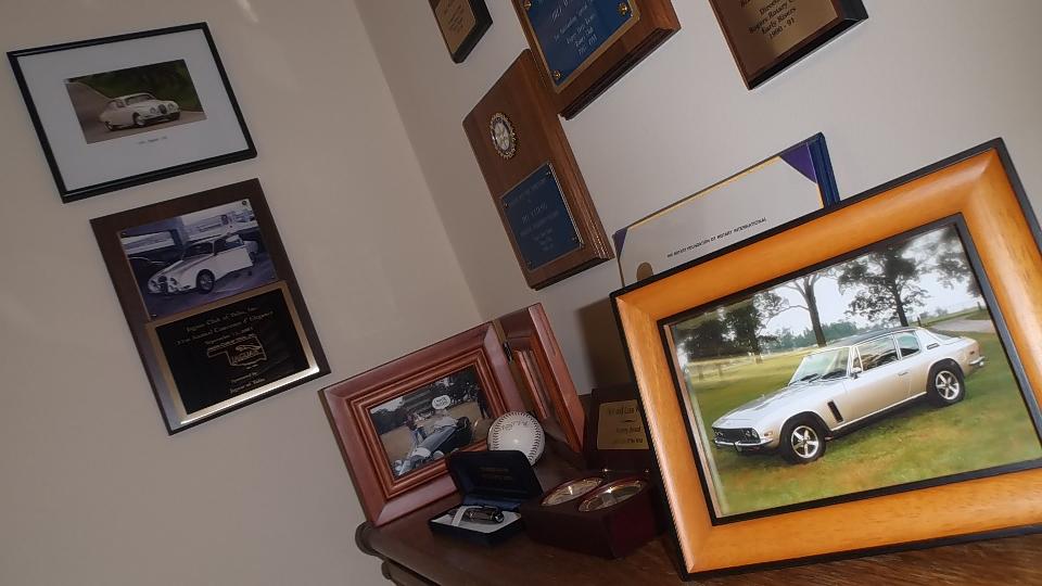 It was a late night last night, so we slept late today. Too late. We got rolling about noon, pushing it consistently 80-mph up the expressways, US-69, I-40, and I-49. At 4:15 pm we rolled into Bill Watkins' law office in Rogers, Arkansas. Short introductions, less than half an hour. I like his sign, he likes my car (but can't fit in it), and the things he likes to drive (Jensen Interceptor and a large vintage Jaguar). Will tell you why I'm here in a minute. With no advance notice we discover there is a local club meeting tonight, so we part company (to resume later).