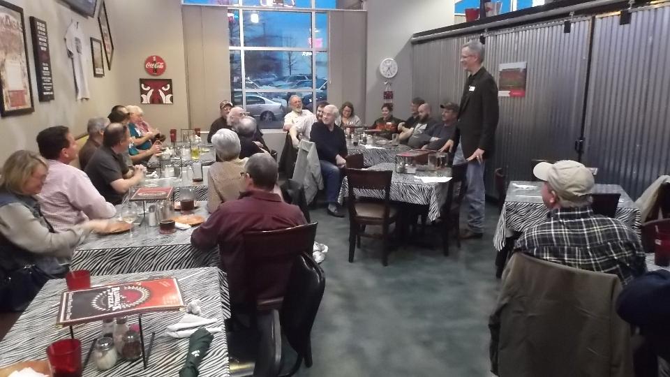 After a few hour sprinting down interstate 10 today, hello, Houston, we're BACK! This time we seem to have a few hours to catch up with "work" (some of it). Then we have a meeting with Houston MG Car Club (with about 30 people present) at Christie's Cafe. Being early for dinner we had a chance to chat with several people before the business meeting. Then the club had a lot on it's mind for new members and guests, past, present and future events, finances, membership, regalia and door prizes. In the end we have a couple more appointments lined up.