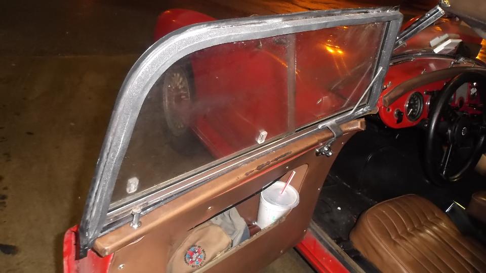(different kind this time). Then a short stop under lights at a gas station to apply some of the sticky stuff. New material for the rag top to windscreen joint is soft hollow vinyl with double-D section, but only 1/4-inch thick. Better seal, but not quite perfect yet. From experience decades past, I also applied some foam rubber around the side curtains. This reduced wind noise and air infiltration considerably, so a successful experiment, and I think we will keep it for a while.